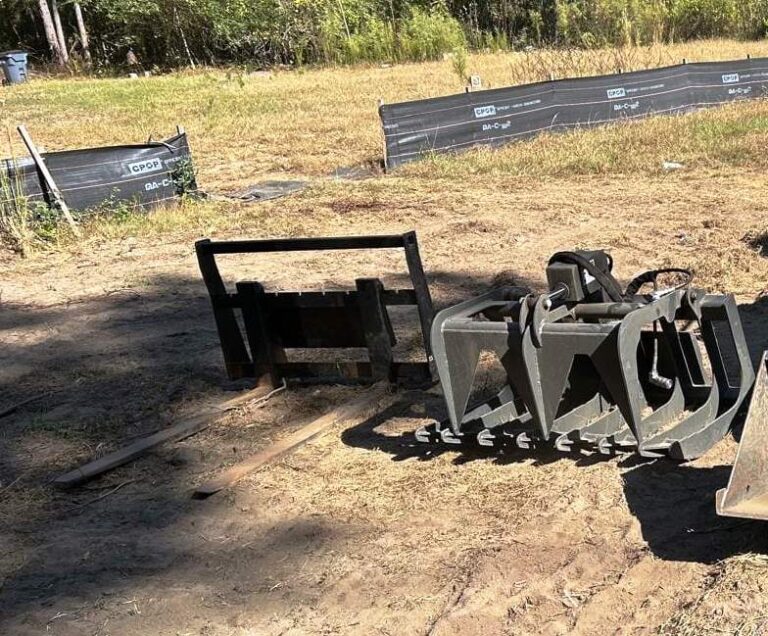 Forks (Skid Steer): 48″ forks available for palletized materials.